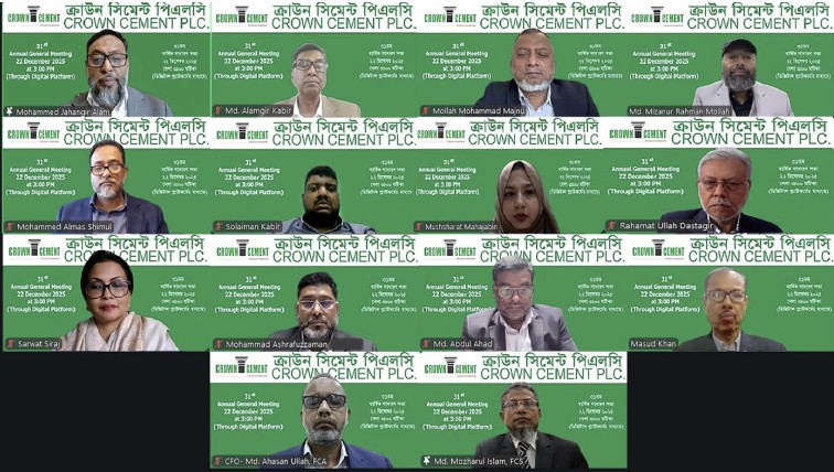 এজিএমে সভাপতিত্ব করেন ক্রাউন সিমেন্ট পিএলসির চেয়ারম্যান মোহাম্মদ জাহাঙ্গীর আলম। সভায় শেয়ারহোল্ডাররা ৩০ জুন ২০২৫ তারিখে সমাপ্ত অর্থবছরের আর্থিক বিবরণী, নিরীক্ষক ও পরিচালনা পর্ষদের প্রতিবেদন অনুমোদন করেন। একই সঙ্গে পরিচালকবৃন্দের নির্বাচন ও পুনঃনির্বাচন, ৩০ জুন ২০২৬ তারিখে সমাপ্ত অর্থবছরের জন্য বহিঃনিরীক্ষক ও কর্পোরেট গভর্ন্যান্স নিরীক্ষক নিয়োগ এবং তাদের পারিশ্রমিক অনুমোদন করা হয়।