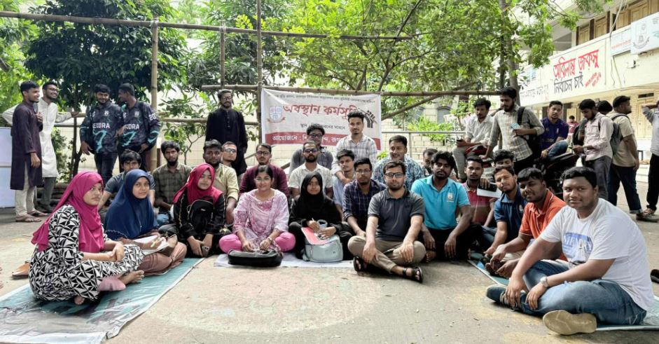 দ্বিতীয় দিনের মতো অবস্থান কর্মসূচি পালন করছেন জবি ছাত্র নেতারা