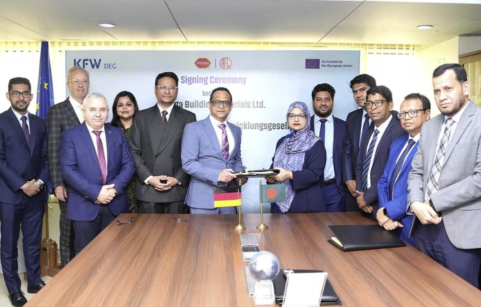 প্রাণ-আরএফএল গ্রুপের সহযোগী প্রতিষ্ঠান বঙ্গ বিল্ডিং ম্যাটেরিয়ালস লিমিটেড (বিবিএমএল)-কে ২৫ মিলিয়ন ইউএস ডলার অর্থায়ন করছে জার্মান বিনিয়োগ ও উন্নয়ন সংস্থা ডিইজি। বৃহস্পতিবার (১১ ডিসেম্বর) রাজধানীর বাড্ডায় প্রাণ-আরএফএল গ্রুপের প্রধান কার্যালয়ে বিবিএমএল ও ডিইজি’র চতুর্থ অর্থায়ন চুক্তি সই হয়। প্রাণ-আরএফএল গ্রুপের পরিচালক (করপোরেট ফাইন্যান্স) উজমা চৌধুরী ও ডিইজি’র এশীয় অঞ্চলের ভাইস প্রেসিডেন্ট (শিল্প ও সেবা) পারভেজ আখতার নিজ নিজ প্রতিষ্ঠানের পক্ষে চুক্তিতে সই করেন। বিবিএমএল ২০০৮ সালে হবিগঞ্জের শায়েস্তাগঞ্জে নিজস্ব শিল্পপার্কে বাণিজ্যিক উৎপাদন শুরু করে। এরপর থেকে প্রতিষ্ঠানটি পিভিসি ডোর, ফিটিংস, ইলেকট্রিক্যাল সুইচ ও সকেট, ফ্যান, এনার্জি সেভিং বাল্ব, মেলামাইন, স্টেশনারি, ওপাল ও রিসাইকেল পণ্যসহ নানান জনপ্রিয় পণ্য উৎপাদন করে আসছে।