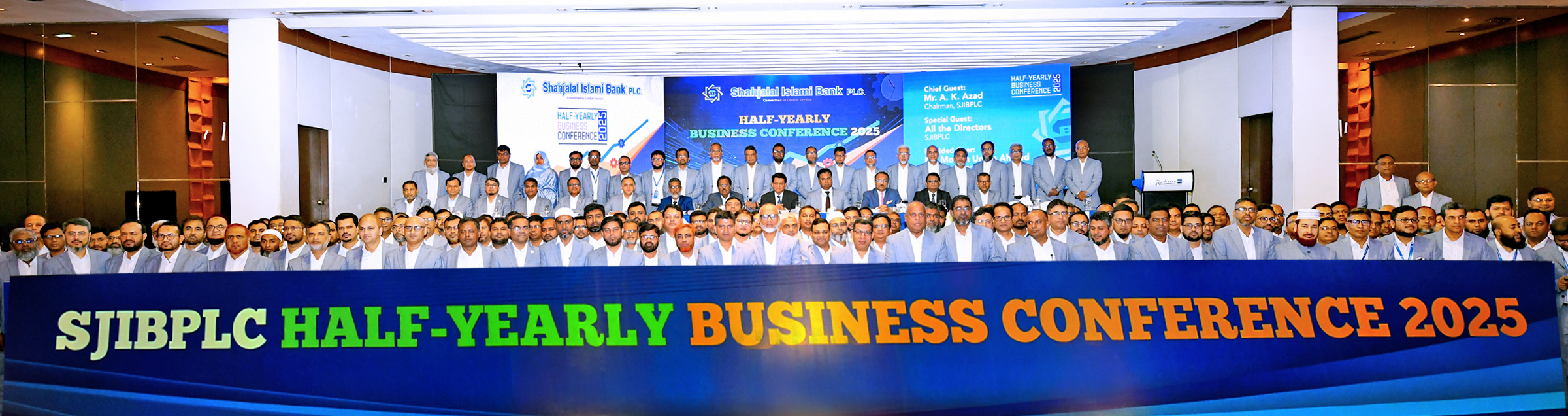 ২ আগস্ট ২০২৫ইং তারিখে শাহ্ধসঢ়;জালাল ইসলামী ব্যাংক পিএলসি এর “অর্ধ-বার্ষিক ব্যবসায়িক সম্মেলন-২০২৫” রাজধানীর রেডিসন ব্লু ঢাকা ওয়াটার গার্ডেন হোটেলে অনুষ্ঠিত হয়। ব্যাংকের ব্যবস্থাপনা পরিচালক জনাব মোসলেহ্ধসঢ়; উদ্দীন আহমেদ এর সভাপতিত্বে অনুষ্ঠিত উক্ত সম্মেলনে শাহ্ধসঢ়;জালাল ইসলামী ব্যাংকের পরিচালক পর্ষদের চেয়ারম্যান জনাব এ. কে. আজাদ প্রধান অতিথি হিসেবে উপস্থিত ছিলেন। সম্মেলনে ব্যাংকের পরিচালক পর্ষদের ভাইস-চেয়ারম্যান জনাব মোহাম্মদ ইউনুছ, স্বতন্ত্র পরিচালক জনাব নাসির উদ্দিন আহমেদ ও জনাব মো: রিয়াজুল করিম বিশেষ অতিথি হিসেবে উপস্থিত থেকে বক্তব্য রাখেন। সম্মেলনে ব্যাংকের অতিরিক্ত ব্যবস্থাপনা পরিচালক জনাব ইমতিয়াজ ইউ. আহমেদ, উপব্যবস্থাপনা পরিচালক জনাব রাশেদ সরওয়ার ও জনাব এম. এম. সাইফুল ইসলাম উপস্থিত ছিলেন।