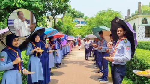তিনশ ছাতা প্রদর্শন করে কলেজ শিক্ষকের বিদায় সংবর্ধনা