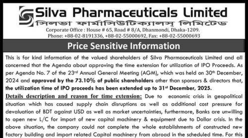 Price Sensitive Information of Silva Pharmaceuticals Ltd